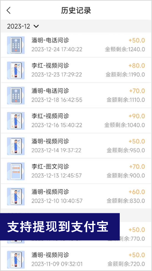 收入、明细、问诊记录